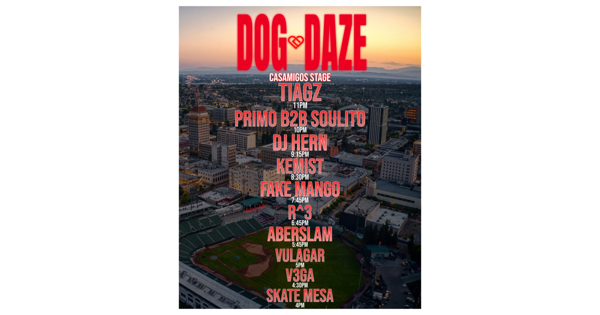 Dog Daze Music Festival, the ultimate celebration of music this September 6th at Chukchansi Park! Three stages featuring The Chainsmokers, San Pacho, Lavern, Nostalgix, TJR, Iann Dior, Sage The Gemini, and many more across EDM, hip-hop, and Latin vibes. From high-energy sets to unforgettable live performances, Dog Daze is where the valley comes together for a night of music, dancing, and memories that last a lifetime. If you missed us in 2025, don't miss us in 2026!